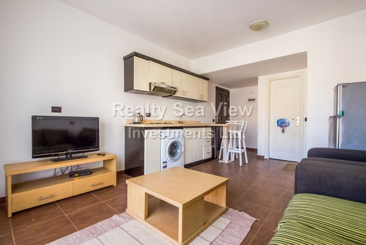 For rent cozy one bedroom apartment in Maraqia Resort, Nabq Bay. Apartment is fully furnished, located on 3-d floor, pool and garden view.